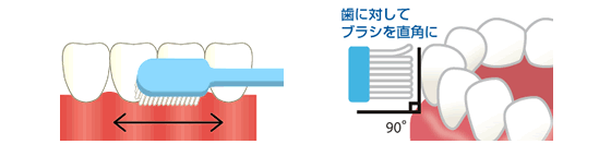 ハブラシの毛先をまっすぐ(歯面に直角になるように)当て